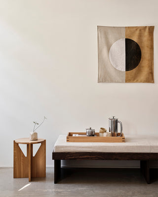 Im Zentrum des Raumes schafft der Outline Chair den Rahmen für intime Abendessen an einem großen Gemeinschaftstisch. Von den erhöhten Sitzplätzen der Outline Bar Chairs aus genießen die Gäste den Blick auf den charmanten Innenhof. Und wer auf der Daybed im hinteren Bereich des Cafés entspannt, bekommt seinen Kaffee stilvoll auf unseren Japanese Trays serviert.