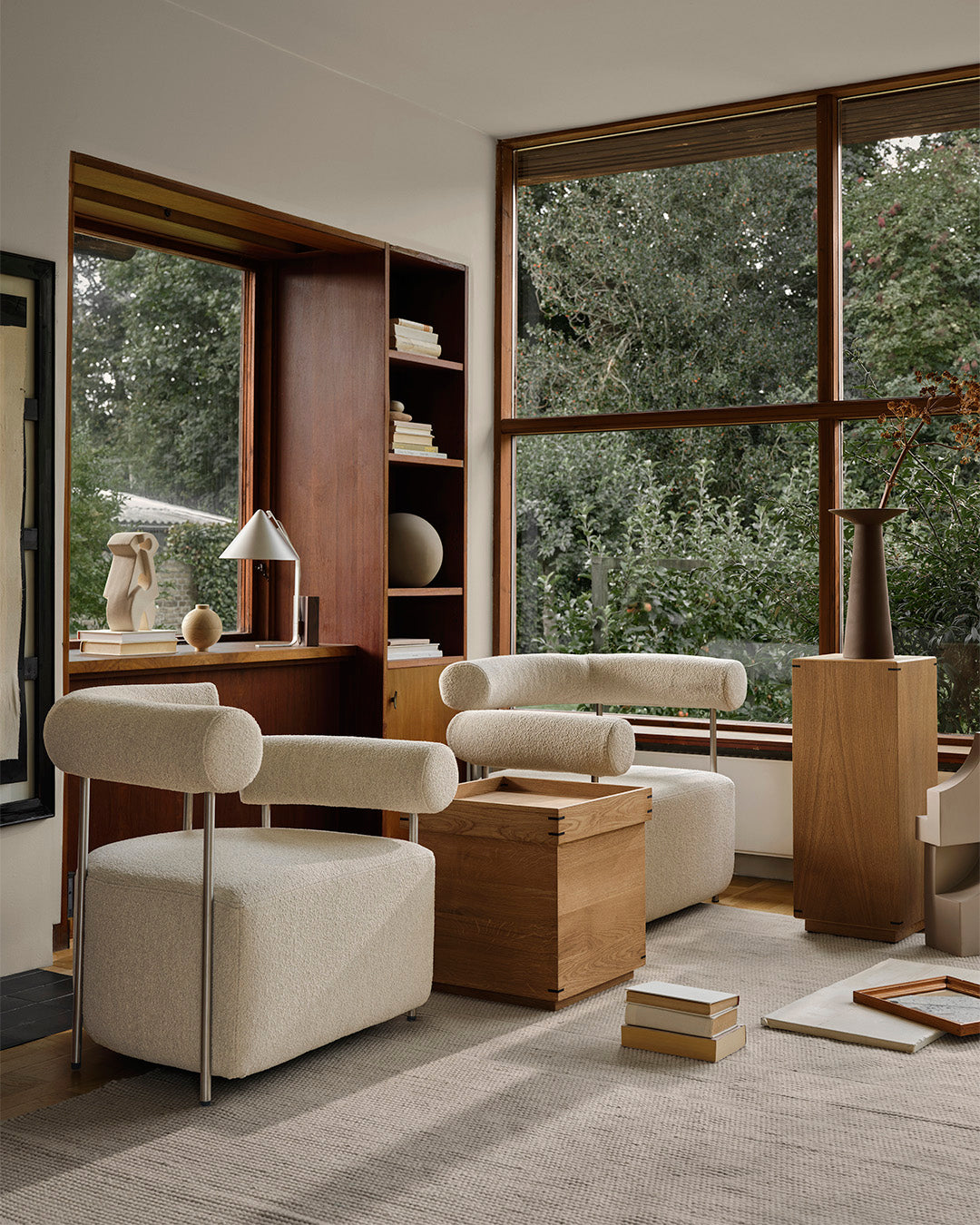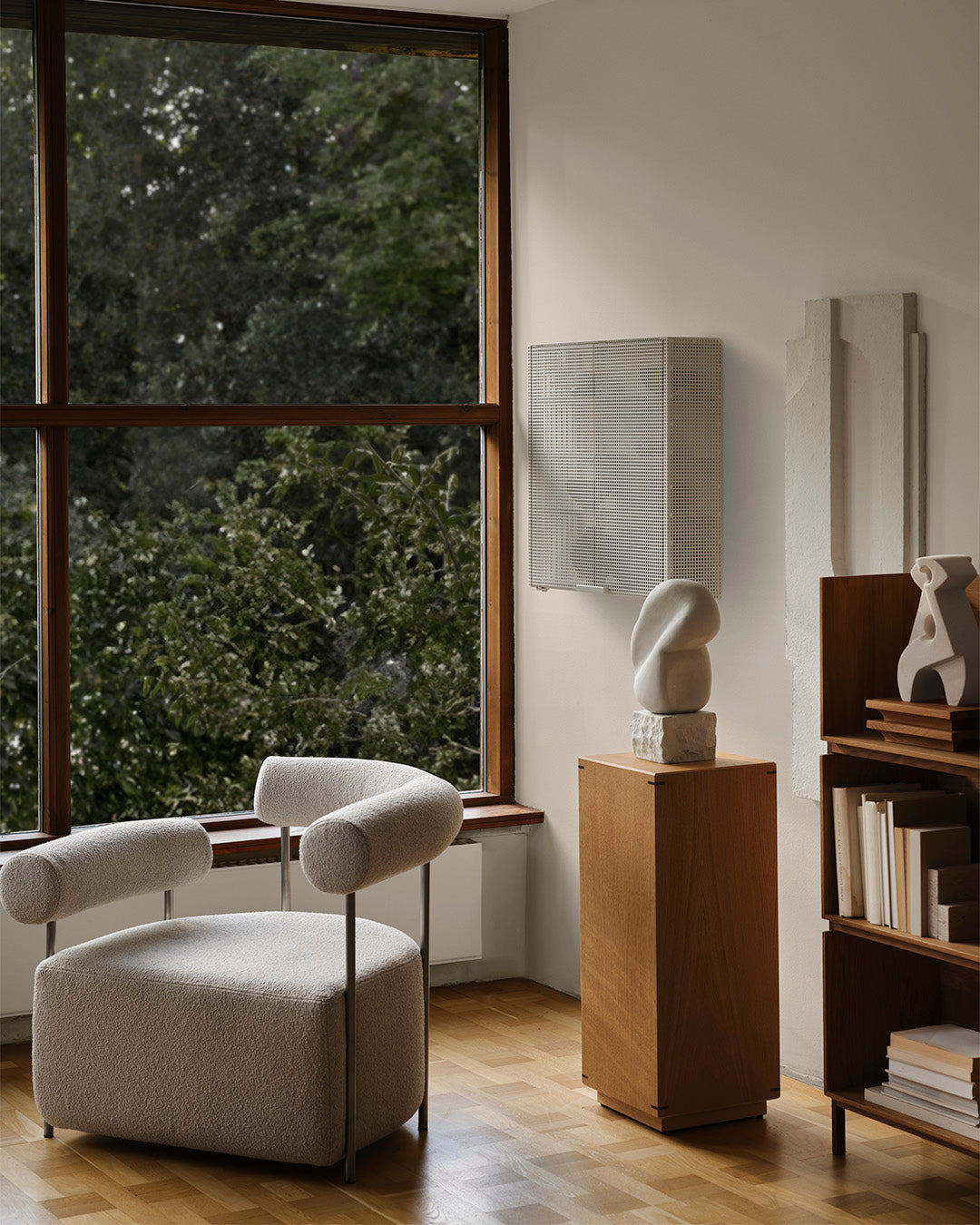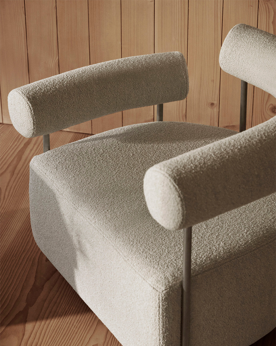 Der Solitude Sessel verleiht jedem Raum eine ruhige und elegante Ausstrahlung. Ganz im Sinne des Sculptural Minimalism ist der Sessel von den geometrischen Prinzipien der Bauhaus-Bewegung inspiriert. Das einzigartige Design mit versetzten Armlehnen ermöglicht vielseitige und komfortable Sitzpositionen. Der Sessel ist mit einem luxuriösen, grob gewebten italienischen Bouclé-Stoff bezogen, der einen harmonischen Kontrast zum Edelstahlgestell bildet. Mehr als nur ein Sitzmöbel ist der Solitude Sessel ein echtes Statement, das Kunst und Design verbindet.