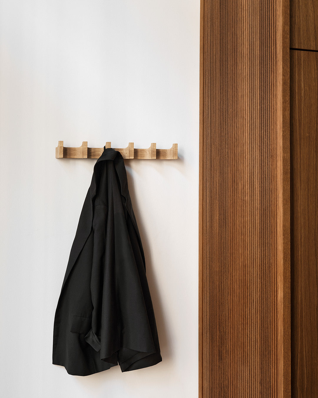 Ein Klassiker von Kristina Dam Studio, der Column Garderobenhaken, lässt sich am besten als ein wahres Kunstwerk beschreiben. Sein Design ist von der geometrischen Eleganz konischer Säulen inspiriert und dient als beeindruckende Wanddekoration, wenn er nicht genutzt wird. Die beliebte Serie wurde nun um den Column Garderobenhaken L erweitert, der zusätzlichen Stauraum bietet und gleichzeitig das anspruchsvolle Design beibehält. Der Garderobenhaken ist aus massiver Eiche gefertigt und verfügt über sechs Haken.